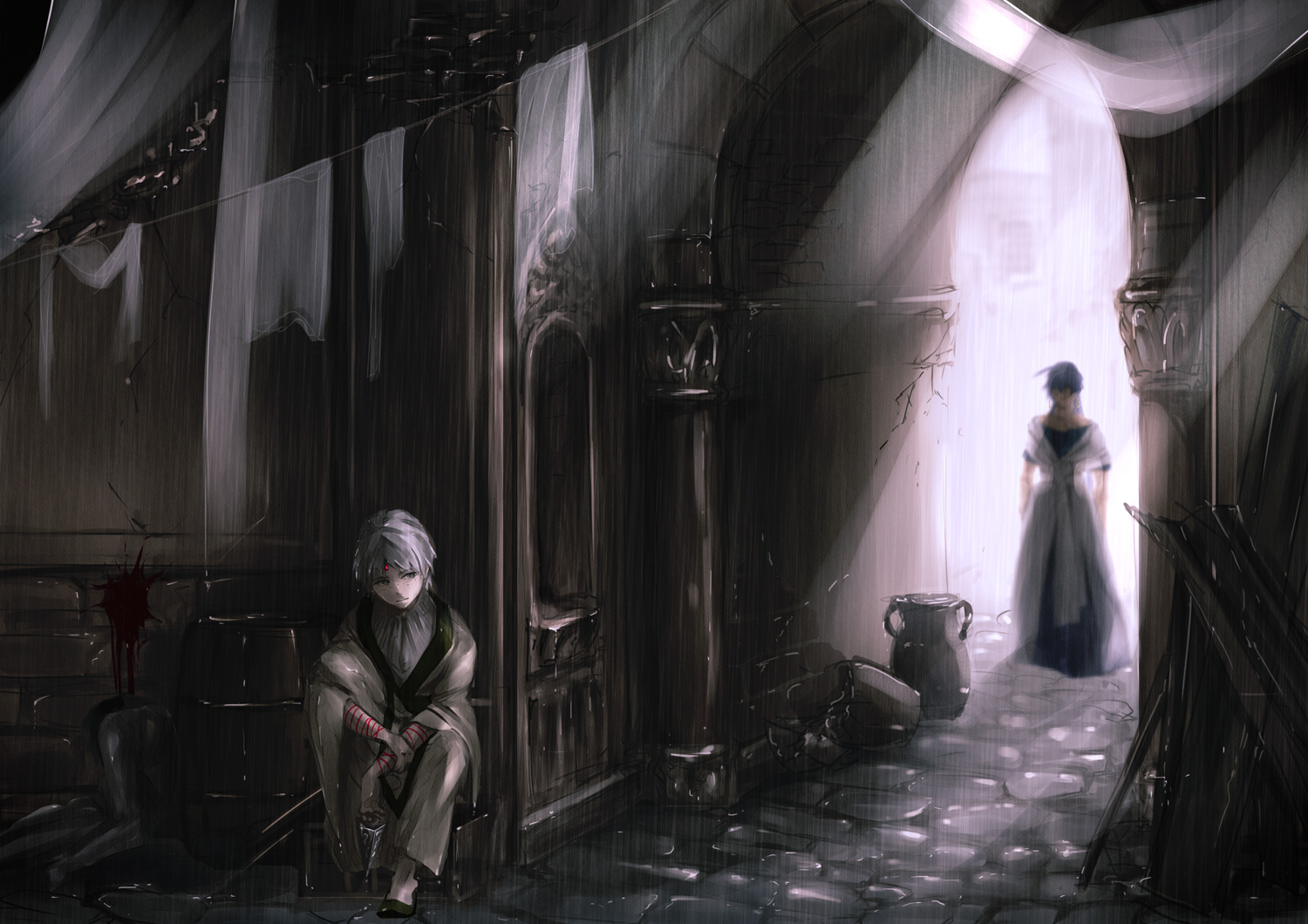 迎え Category:magi Date:2015年07月13日 梅雨なので、雨。 ジャーファルは暗部の仕事もしてるんだろうなと。 役立つなら自分の持っている力すべて活用させるべきっていう考えと せっかく組織を抜けてシンと行くと決めたのにいつまでも昔の世界から足を洗えないでいる という事に整理が付かずにジメジメしているジャーファルと、 それを是とも否とも言えないシンドバット。 ↑画像クリックで拡大しますが、 加工しすぎと小さくてつぶれたジャーファル供養。 表情を決めるのがちょっと悩ましかったのでせっかくなので。 フォトショで仕上げの加工するのが楽しくていつもやりすぎます。 PR